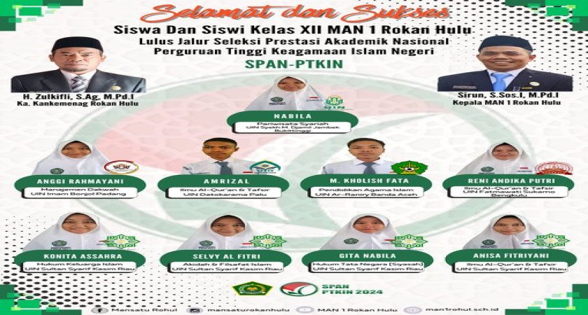 Sembilan Orang Siswa MAN 1 Rokan Hulu Lulus Seleksi SPAN-PTKIN
